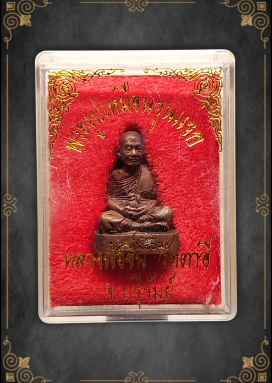 รูปหล่อรุ่นแรก เนื้อทองแดง มีกล่องเดิม หลวงปู่ชื่น วัดตาอี บุรีรัมย์ อุดผงพุทธคุณผสมผงพรายกุมารหลวงปู่ทิม ฝังตะกรุดจารมือยุคแรกของหลวงปู่