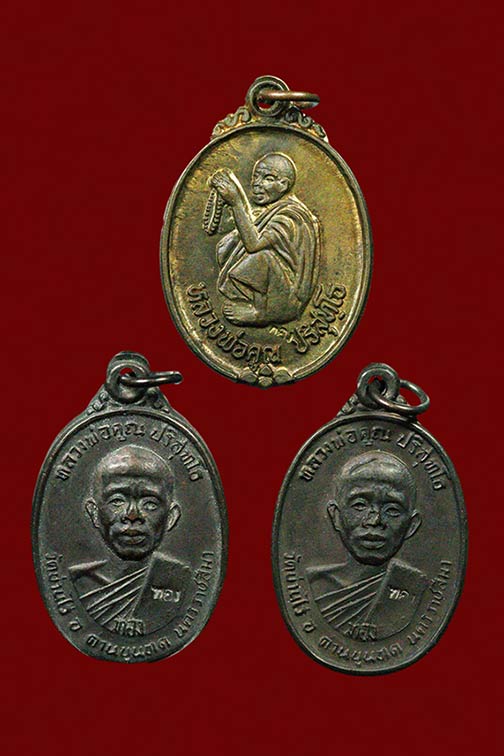 3 เหรียญ รุ่นคูณทอง หลวงพ่อคูณ ( มีเนื้อนวะ 1 เหรียญ ครึ่งองค์เนื้อทองแดงรมดำ 2 เหรียญ ) |