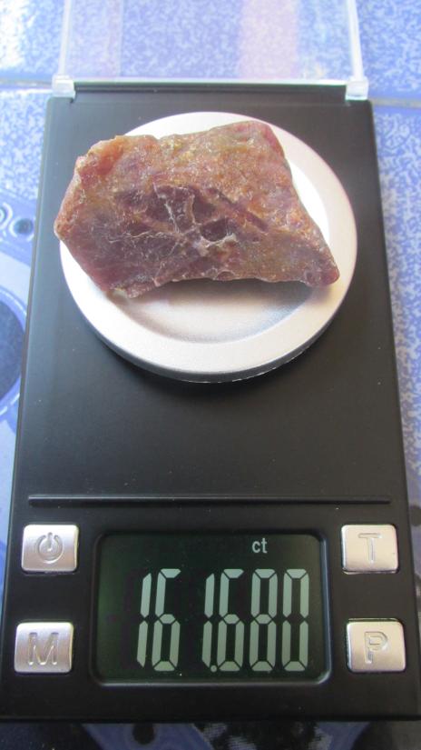 ลักษณะ: พลอยดิบ ทรงธรรมชาติ สีแดงอมชมพูสวยงาม มีปฏิกิริยาเรืองแสง (Fluorescence) ชัดเจนภายใต้แสง UV