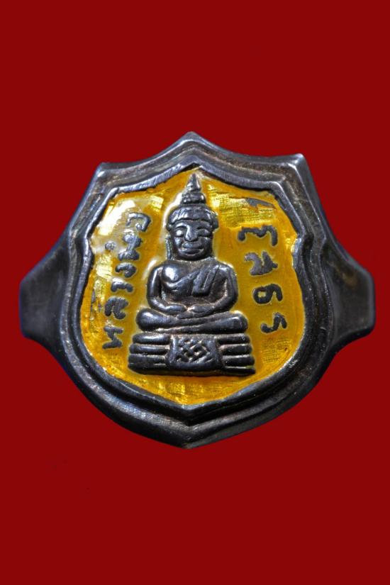 วัดใจ 990.แหวนหลวงพ่อโสธร เนื้อเงินลงยาสีเหลือง ไม่ทราบปี สภาพสวยเดิมๆครับ ยาไม่กระเทาะน่าบูชาครับ |
