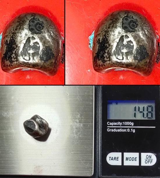วัดใจ 1290.พดด้วงเนื้อเงินตอก2ตรา หนัก 14.8 กรัม