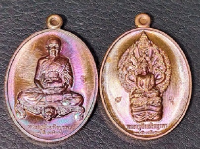 เหรียญหลวงปู่บัว รุ่นมงคลมหาลาภ เหรียญนั่่งโต๊ะเต็มองค์เลข1613+เหรียญพระนากปรกเลข 2575 2 เหรียญ เนื้อทองแดง ปี 2559 ราคาวัดใจ