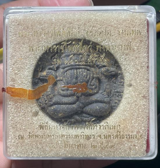 พระปิดตาพังพระกาฬ รุ่น 700 ปี ศรีวิชัย ปี 2549 เนื้อว่านดำผสมไม้มงคล มีโค๊ต มีเลข สวยเดิมๆพร้อมกล่องคับ |
