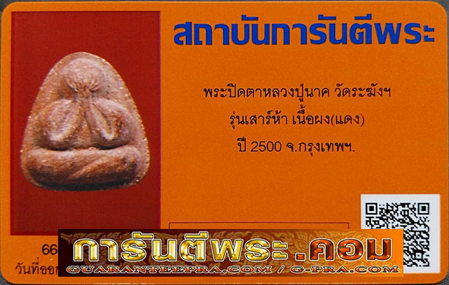 ปิดตาหลวงปู่นาค วัดระฆังฯ รุ่นเสาร์ห้า เนื้อผง(แดง)ปี2500