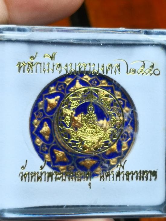 เหรียญจตุคาม รามเทพ เนื้อทองแดงกะไหล่ทองลงยาน้ำเงิน รุ่นหลักเมืองมหามงคล 50 ขนาด 3.2 ซม. พร้อมกล่องเดิมตามรูป ราคาเบาๆ
