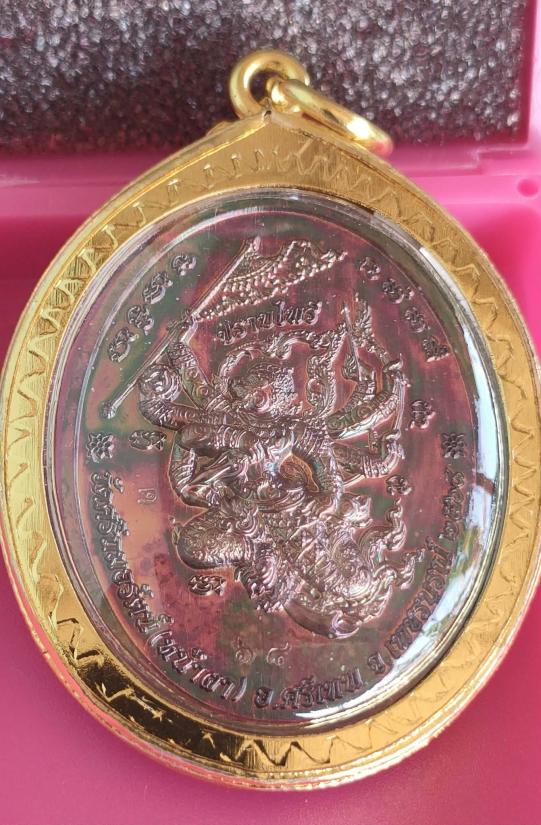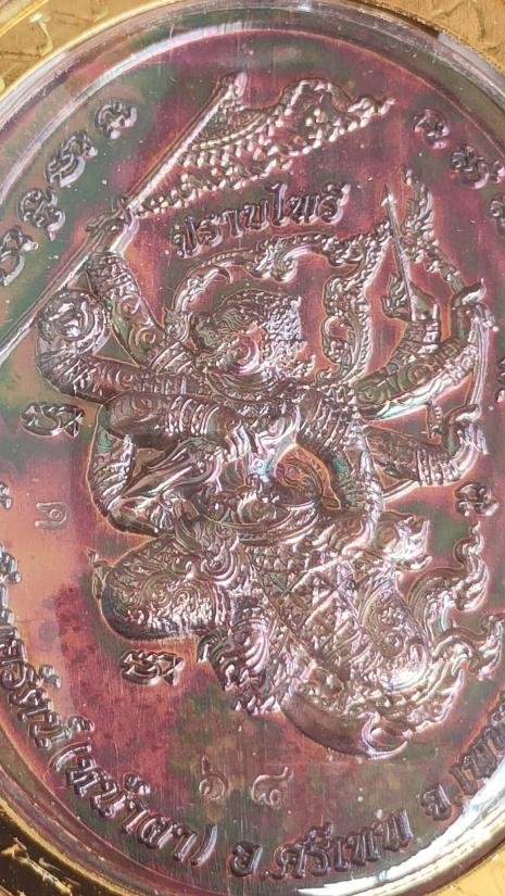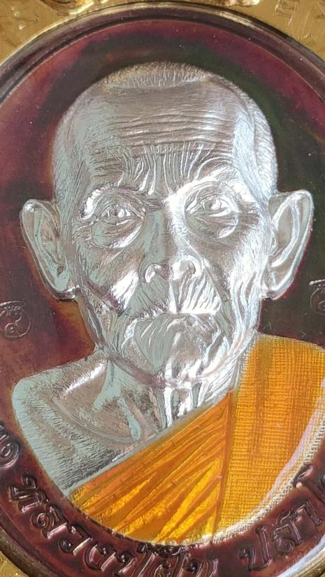 เหรียญ"ปราบไพรี"หลวงปู่ฝั้น ปสาโท วัดศรีถมอรัตนฺ์(วัดหน้าผา)เพชรบูรณ์ เนื้อทองแดงผิวรุ้ง หน้ากากชุบเงินลงยาจีวร ตอกโค๊ต๙ถุงเงิน หลังหนุมานเชิญธง เลี่ยมกรอบชุบทองยกซุ้มหัวสิงห์พับหลัง เลข ๖๘ พร้อมกล่อง |