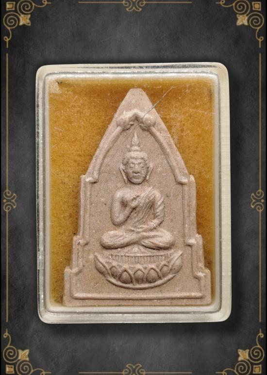องค์พระมีขนาด 2.2 X 3.2 c.m. เนื้อผงเกษรผสมน้ำมันสีเหลืองอมเขียว มีส่วนผสมของผงเก่าของพระเกจิรุ่นเก่าเช่นพระสมเด็จวัดระฆัง บางขุนพรหม ด้านหลังมียันต์แบบเดียวกันกับพระเสตังคมุนี