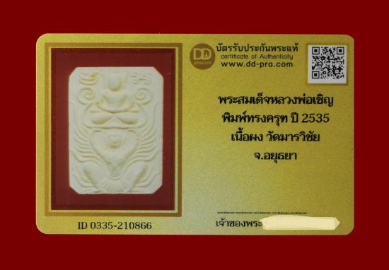 พระสมเด็จหลวงพ่อเชิญ พิมพ์ทรงครุฑ ปี 2535 เนื้อผง วัดโคกทอง จ.อยุธยา น่าบูชามากๆค่ะ+บัตร DDpra