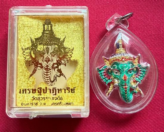 วัดใจไปเลย เศียรพระพิฆเนศ รุ่นเศรษฐีปาฏิหาริย์ วัดสุวรรณเจดีย์ จ.พระนครศรีอยุธยา เนื้อชุบเงินลงยา หมายเลข 16