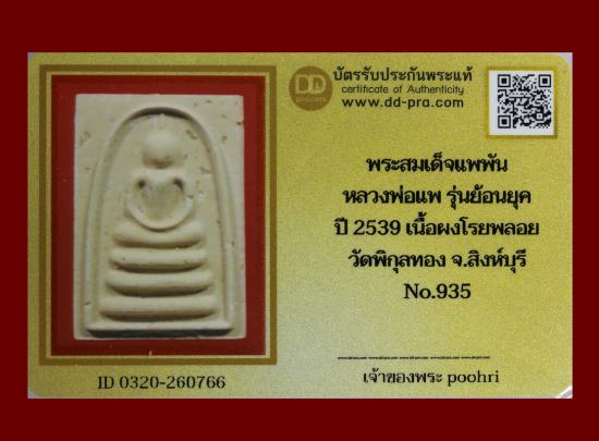 พระสมเด็จแพพัน หลวงพ่อแพ ปี 2539 รุ่นย้อนยุค เนื้อผงโรยพลอย วัดพิกุลทอง จ.สิงห์บุรี น่าบูชามากๆค่ะ+บัตร DDpra