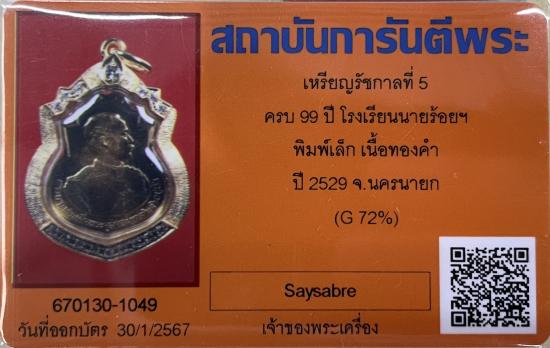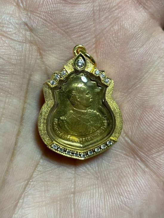 ** เหรียญ รัชกาลที่ 5 โรงเรียนนายร้อยพระจุลจอมเกล้า ปี2529 เนื้อทองคำ พิมพ์เล็ก เลี่ยมกรอบทองคำฝังเพชร สภาพสวย พร้อมบัตรรับรองครับ
