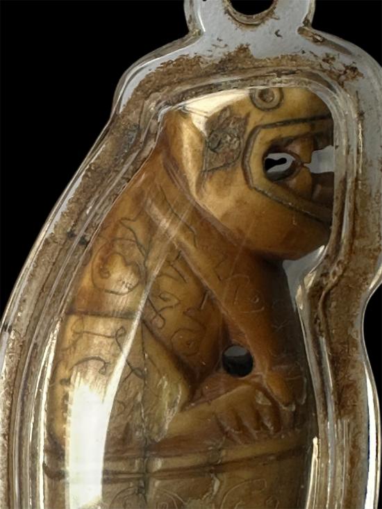 รายละเอียด เขี้ยวหมีแกะเสือมีรอยจาร อักขระรอบตัว พุทธศิลป์งดงามไม่ทราบที่