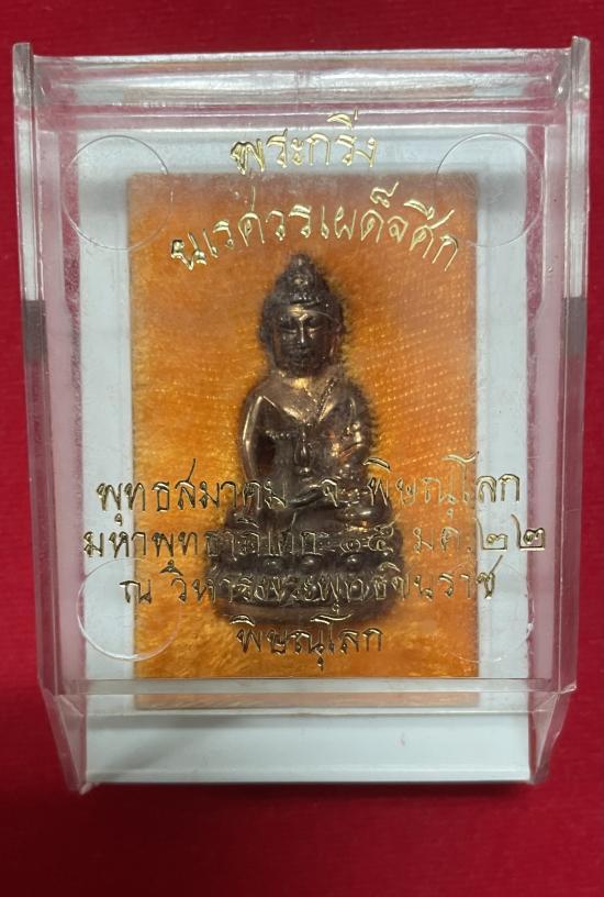 พระกริ่งนเรศวรเผด็จศึกจัดสร้างขึ้นเมื่อวันที่ 15 มกราคม พ.ศ.2522 โดยพุทธสมาคมจังหวัดพิษณุโลก หลวงพ่ออุตตมะ เป็นประธานเททอง ณ ศาลสมเด็จพระนเรศวรมหาราชและมีเกจิอาจารย์จำนวนมากร่วมประกอบพิธีพุทธาภิเษก อาทิ หลวงปู่โต๊ะ วัดประดู่ฉิมพลี หลวงพ่อเทียม วัดกษัตราธิราช อยุธยา และหลวงพ่อแพ วัดพิกุลทอง สิงห์บุรี เป็นต้น สร้างเนื้อนวโลหะเพียง 5,000 องค์เท่านั้น ใต้ฐานของทุกองค์จะตอกโค๊ตรูปพระสมเด็จพระนเรศวรมหาราชทรงช้างและหมายเลขกำกับไว้ทุกองค์ สำหรับองค์นี้หมายเลข 4773 สภาพสวย ผิวเดิมๆประกายไฟสีส้มกระจายอยู่ทั่วองค์ อยู่ในกล่องเดิมจากวัด