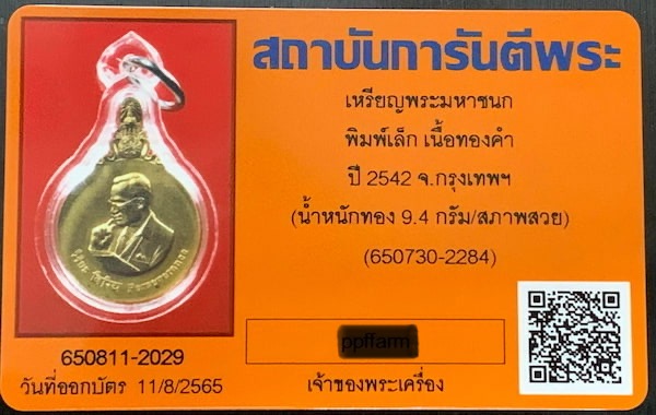 เหรียญพระมหาชนก เนื้อทองคำ พิมพ์เล็ก ปี2542 เลี่ยมกันน้ำ พร้อมบัตรรับรองสภาพสวย ครับ ช่วงนี้ ราคาทองคำขยับขึ้นทุกวันๆ ครับ