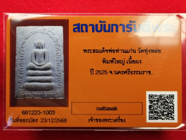 สมเด็จยันต์ล้อม พิมพ์ใหญ่ พ่อท่านแก่นวัดทุ่งหล่อพร้อมบัตรรับรอง |
