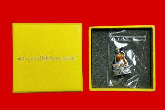 กริ่งพระพุทธศรีสุขมงคลทรัพย์ วัดหอมศรี อ.บางบ่อ สมุทรปราการ ปี ๒๕๖๓ สร้าง ๙๙๙ องค์ เนื้อไวท์บรอนซ์รมซาตินลงยาจีวร หมายเลข ๘๑ พิธีพุทธาภิเษก ณ วัดหอมศรี อ.บางบ่อ จังหวัด สมุทรปราการ ปี ๒๕๖๓ เมตตาอธ