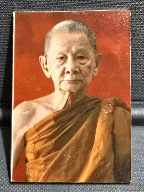 รูปถ่ายหลวงปู่(องค์กรรมการ สร้าง 99 องค์) ตอกโค๊ดบนรูป 3 โค๊ด ตอกโค๊ดใบโพธิ์รอบ