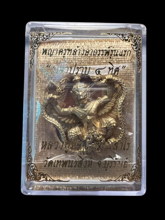 พญาครุฑ รุ่นแรก มหาปราบ ๔ ทิศ หลวงปู่พวง วัดเทพนรสิงห์ (วัดโคกตาสิงห์) จ.บุรีรัมย์ ปี 2565 เนื้อทองชนวน หมายเลข 927 สวยๆ พร้อมกล่องเดิม |