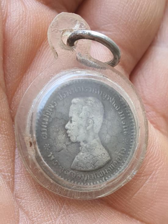 เหรียญหนึ่งสลึง ร.5 เนื้อเงินหลังช้างสามเศียร ปี 2462 พร้อมเลี่ยมกรอบสวยๆๆ