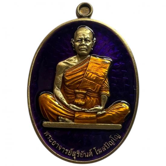เหรียญสร้างบารมี พระอาจารย์สุริยันต์ วัดป่าวังน้ำเย็น มหาสารคาม เนื้อทองทิพย์ซาติน ลงยาม่วง ลงยาจีวร เลข344 กล่องเดิม |
