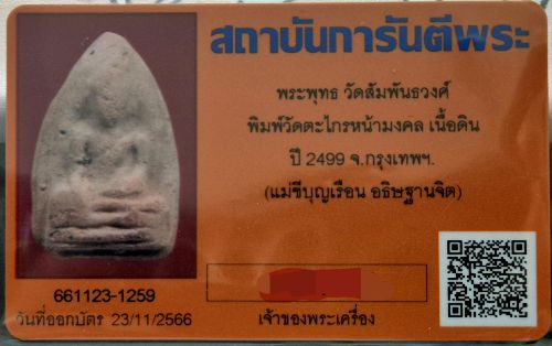 พระวัดสารนาถฯ พิมพ์วัดตะไกร (หน้ามงคล) เนื้อดิน ปี 2499 จ.ระยอง (แม่ชีบุญเรือน อธิษฐานจิต) พร้อมบัตรรับรองครับ