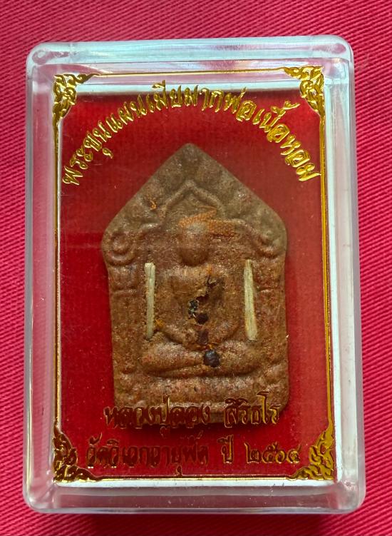 วัดใจไปเลย พระขุนแผนเมียมากพ่อเนื้อหอม หลวงปู่ลอง วัดวิเวกวายุพัด ปี 2564 เนื้อผงฝังตะกรุด 2 ดอก หมายเลข 176 |