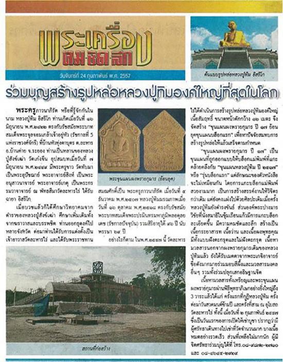ปีและรุ่น:พ.ศ. 2557 (รุ่นที่ระลึกเททองหล่อหัวใจ หลวงปู่ทิม อิสริโก)