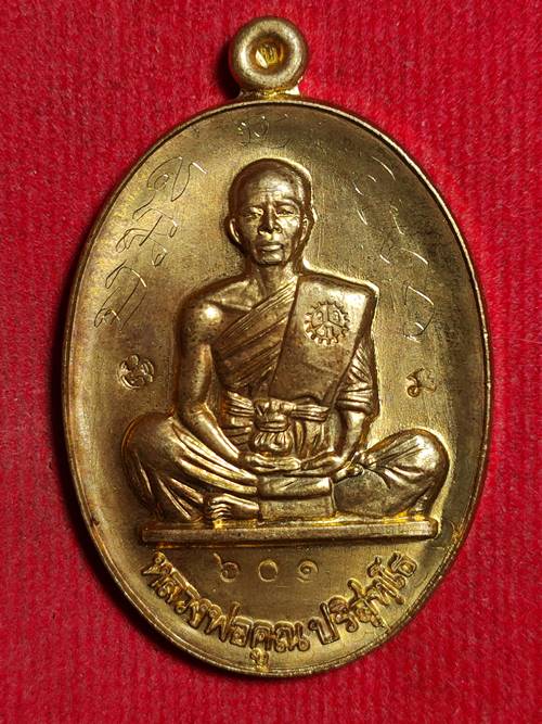 เหรียญประสบการณ์ หลวงพ่อคูณ รุ่น ย้อนยุค รุ่น สร้างบารมี ปี 19 ออกวัดใหม่อัมพวัน ปี 54 เนื้อ ทองฝาบาตร หมายเลข 601 มีจาร เคาะเดียวแดง |