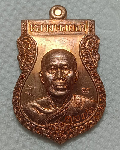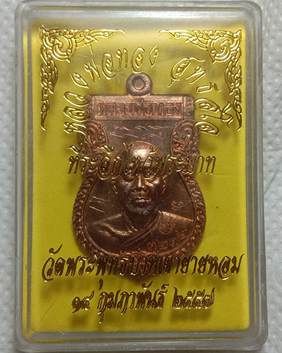 เหรียญเสมาไหว้พระบาท หลวงพ่อทอง สุทธสีโล วัดพระพุทธบาทเขายายหอม เนื้อทองแดง หมายเลข ๓๒๗๒(จารหน้า/หลัง) กล่องเดิม |