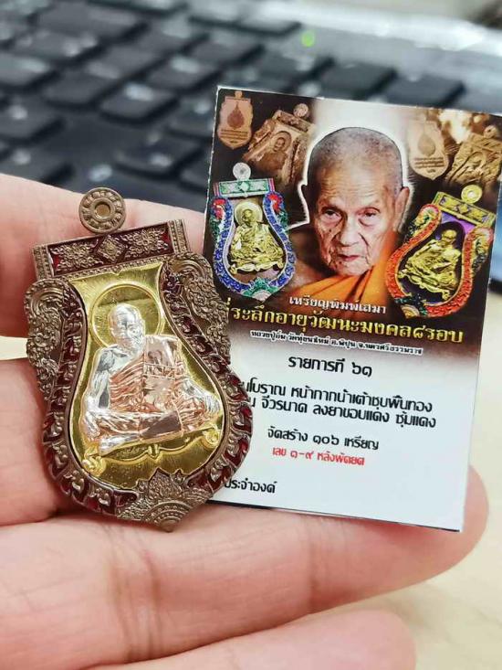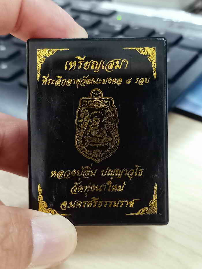 วัดใจ 100 เหรียญเสมา 8 รอบ หลวงปู่อิ่ม วัดทุ่งนาใหม่ จ.นครศรีธรรมราช 2566 ชนวน หน้ากากชุบทอง ซุ้มลงยา หมายเลข 78 สร้าง 106 กล่องเดิม