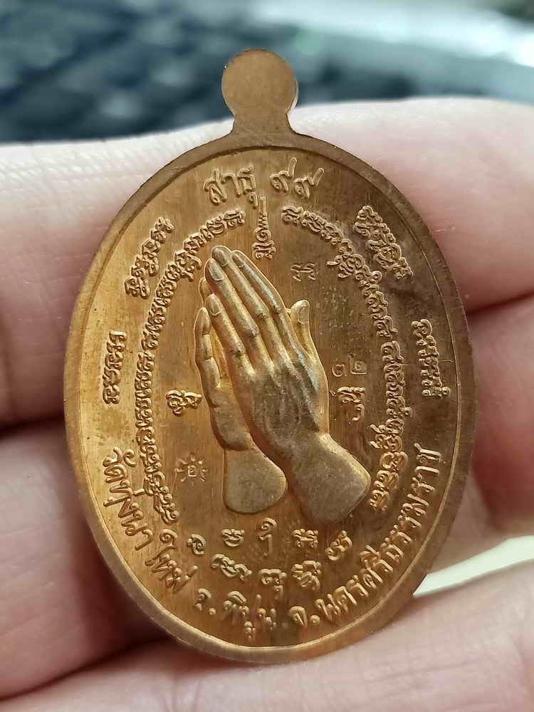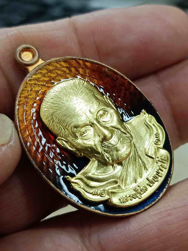 วัดใจ 100 เหรียญสาธุ 99 หลวงปู่อิ่ม วัดทุ่งนาใหม่ จ.นครศรีธรรมราช 2566 ทองแดงผิวไฟ หน้ากากทองทิพย์ ลงยา หมายเลข 32 กล่องเดิม