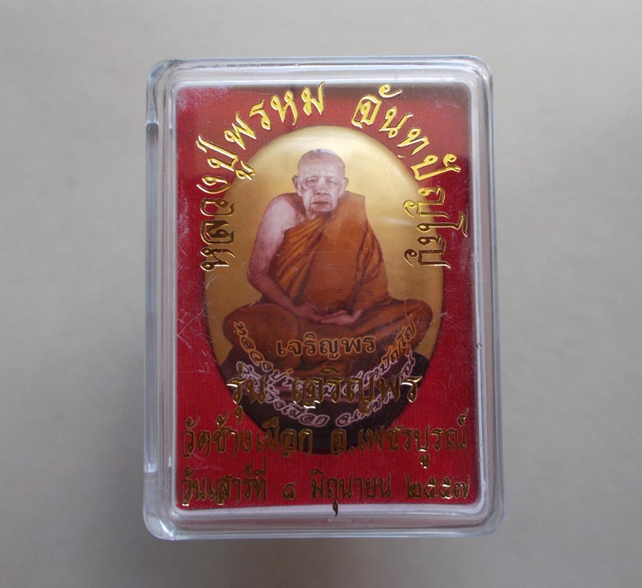 ล๊อกเก็ตฉากทองจัมโบ้ หลวงปู่พรหม จันทปัญโญ วัดช้างเผือก จ.เพ ชรบุรณ์ รุ่นเจริญพร พ.ศ.2557 สภาพสวย กล่องเดิมๆ !!