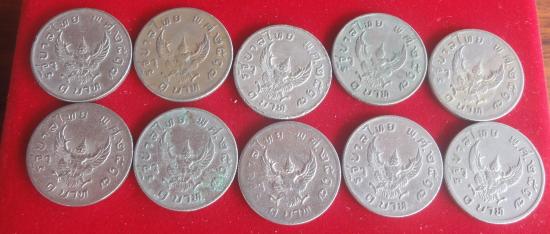 +++ +++ เหรียญ 1 บาท มหาบพิธ เหรียญครุฑปี 17 สถาพใช้ จำนวน 10 เหรียญ เบาๆๆ +++