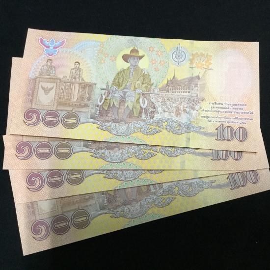 แบงค์ 100 ที่ระลีก บรมราชาภิเษก รัชกาลที่ 10 เลขเรียง รวม 4 ฉบับ