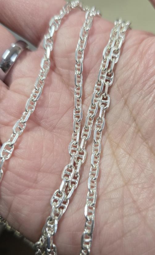 มือ 1 สร้อยเงินแท้ ลายโซ่สมออิตาลีลาย ยาว 22 นิ้ว กว้าง 3 มิล หนัก 14.7 กรัม ลายยอดนิยมเป็นของใหม่มือ 1 ไม่ผ่านการใช้งานมาก่อนครับ งานตันๆ แข็งแรงครับ |