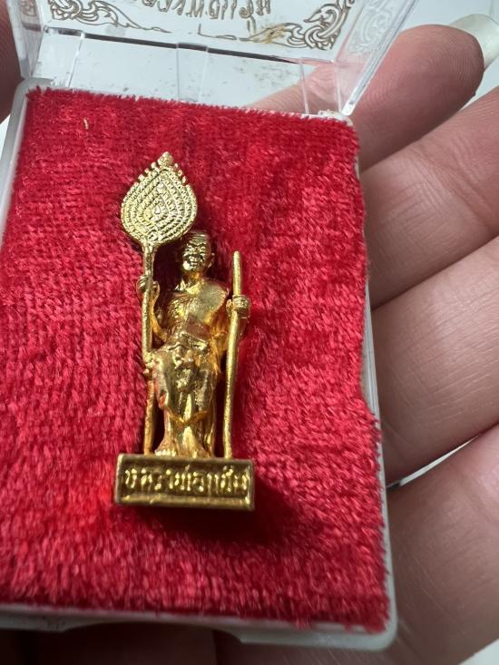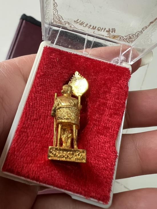 รูปหล่อหลวงพ่อแช่ม วัดฉลอง จ.ภูเก็ต นั่งเก้าอี้ ถือพัดยศ ปี 2535 กาหลั่ยทอง ก้นวงเดือน พร้อมกล่อง