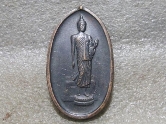 วัดใจเคาะเดียว.......100.......เหรียญพระ 25 ศตวรรษ พระศรีศากยะทศพลญาณ ประธานพุทธมณฑลสุทรรศน์ ปางลีลา ด้านหลัง อัญเชิญพระปรมาภิไธย ย่อ ภปร สร้างในงานสมโภชกรุงรัตนโกสินทร์ครบ 200 ปี จ.นครปฐม พ.ศ. 2525