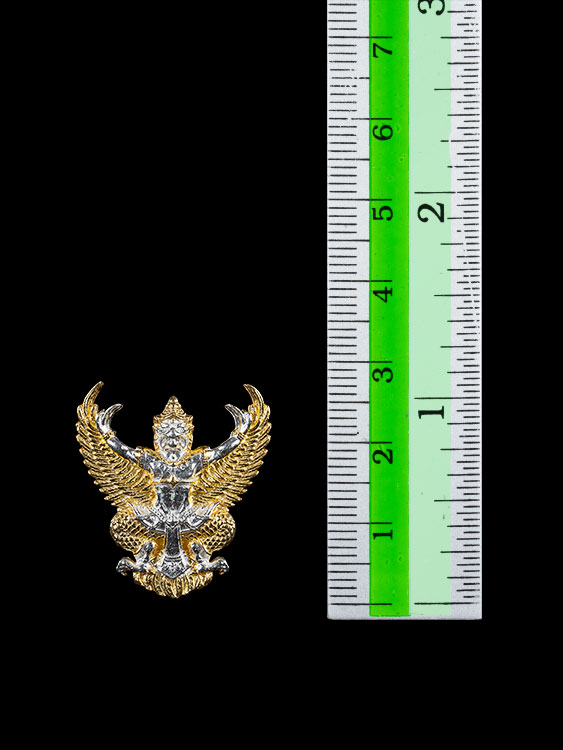 เนื้อเงิน สองกษัตริย์: การนำเนื้อเงินแท้มาขัดเงาและตัดด้วยสีทอง (สองกษัตริย์) ช่วยขับเน้นพุทธศิลป์ขององค์พญาครุฑให้ดูสง่างาม มีพลัง และดูภูมิฐานมากครับ