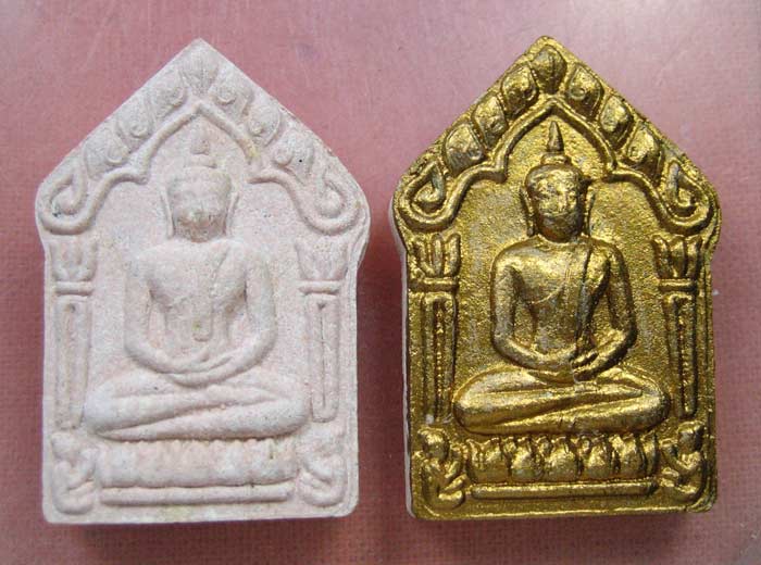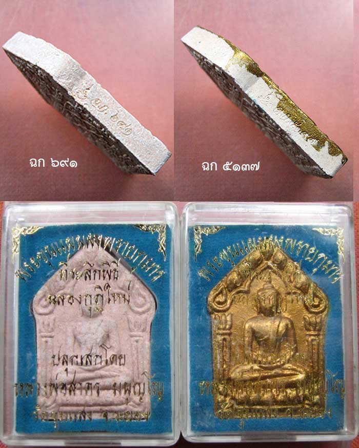 พระขุนแผนผงพรายกุมาร ที่ระลึกพิธีฉลองกุฎิ เนื้อชมพู ปี ๒๕๕๓ ไม่ทาทอง หมายเลข ๖๙๑ และทาทอง หมายเลข ๕๑๓๗ พร้อมกล่องเดิมๆ
