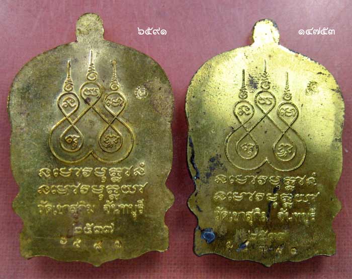 เหรียญนั่งพาน เนื้อทองเหลือง หลวงพ่อสมชาย วัดเขาสุกิม ตอกโค้ด ส และโค้ด จำนวน 2 เหรียญ หมายเลข ๖๕๙๑ และ ๑๔๗๕๓ ได้มาจากคนในพื้นที่