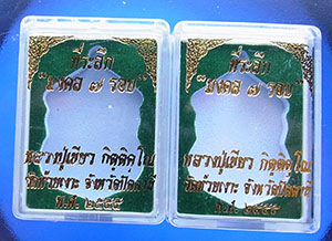 2 เหรียญเสมา 7 รอบ พ่อท่านเขียว วัดห้วยเงาะ จ.ปัตตานี ปี 2555 เนื้ออาปาก้า สภาพออกจากวัด เก็บอย่างดี พร้อมกล่องเดิมครับ