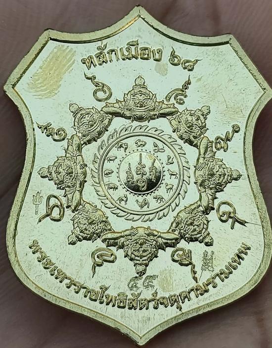 เหรียญพระเทวราชโพธิสัตว์จตุคามรามเทพ หลักเมือง๖๘ จ.นครศรีธรรมราช เหรียญอาร์ม เนื้อทองทิพย์ คุ้ยพื้นลงยาเขียวขอบแดง หมายเลข ๕๕ พร้อมกล่อง งานลงยาสร้างน้อยมากคับ เลขเบิ้ลสวยๆ น่าสะสมคับ |
