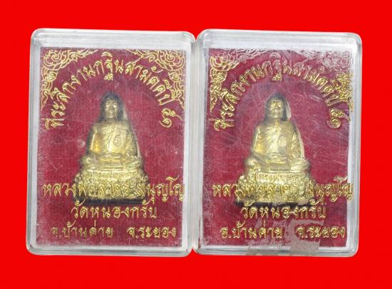 รุ่นกฐินประจำปี ๒๕๕๑ รูปหล่อหลวงพ่อสาครฐานปูปลา เนื้อทองเหลือง ใต้ฐานอุดผงพรายกุมาร สร้างจำนวน ๙,๙๙๙ องค์ จัดสร้างปี ๒๕๕๑( 2 องค์พร้อมกล่อง)