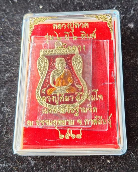 วัดใจ หลวงปู่ทวด หลวงปู่ศิลา เมตตาอธิษฐานจิต รุ่นเลื่อนสมณศักดิ์ เหนือดวง เนื้อทองทิพย์ ลงยา No.173 |