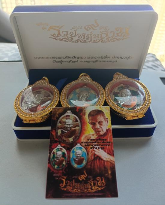 วัดใจเคาะเดียวแดงจ้า ชุดกรรมการ รวยหมื่นล้าน หลวงปู่อิ่ม วัดทุ่งนาใหม่ สร้าง9ชุด ชุดนี้หมายเลข9ทั้งชุด เนื้อนวะชุบทองขาว พร้อมตลับชุบทองฝังเพชร เคาะเดียวแดงจ้า