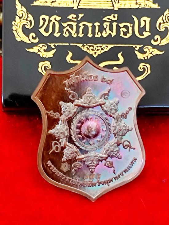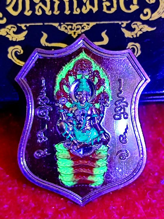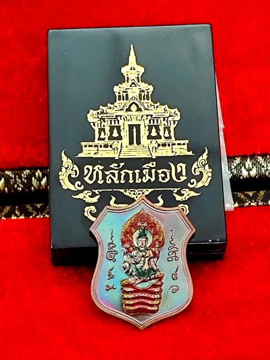 180-เคาะเดียว องค์พ่อจตุคามรามเทพ หลักเมือง 68 เนื้อทองแดงมันปูผิวรุ้ง ลงยาทรงเครื่อง #เรืองแสง หมายเลข ๑๔๙ พร้อมกล่องเดิม