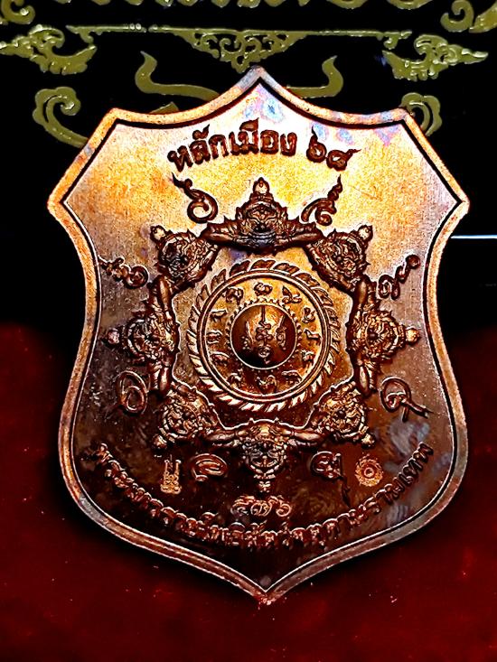 150-เคาะเดียว องค์พ่อจตุคามรามเทพ หลักเมือง 68 เนื้อทองแดงผิวไฟหน้ากากชนวนเต็มแผ่น หมายเลข ๔๗๖ พร้อมกล่องเดิม
