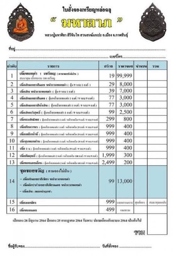 รายการ 15 ครับ ไม่มีในรายการจองครับ สร้างแจกกรรมการ แจก ศูนย์จอง มีเพียง 999 องค์ครับ