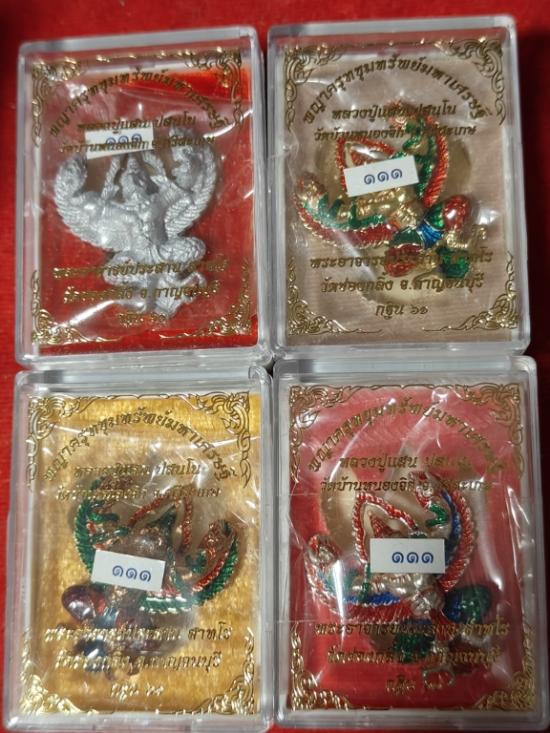 วัดใจ...เลข111 ชุดกรรมการ 4 องค์ (จอง600) (หลวงปู่แสนปลุกเสก) พญาครุฑขุมทรัพย์มหาเศรษฐี กฐิน ๖๑ พระอาจารย์ประสาน วัดช่องกลิ้ง ตำบลหนองนกแก้ว อำเภอเลาขวัญ จังหวัดกาญจนบุรี |
