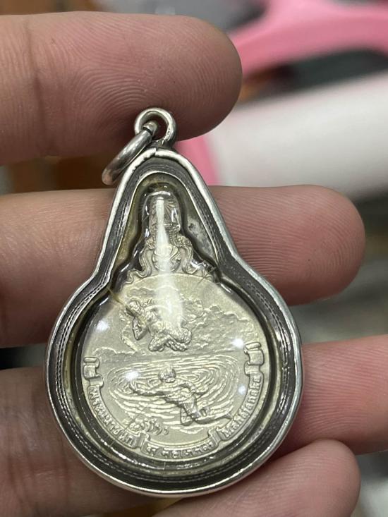 เหรียญพระมหาชนกพิมพ์เล็กเนื้อเงิน พร้อมเลี่ยมกรอบเงิน